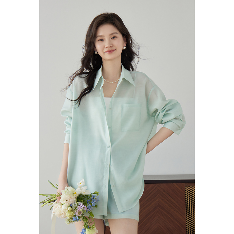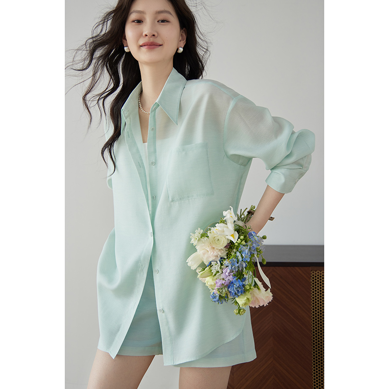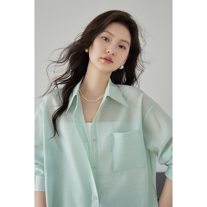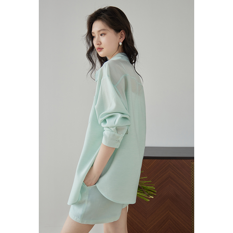 女士蓝色气质通勤衬衣韩版 太平鸟女装 25年款 衬衫 莱赛尔长袖