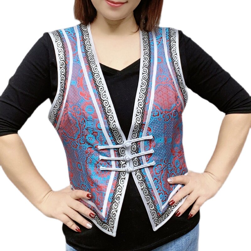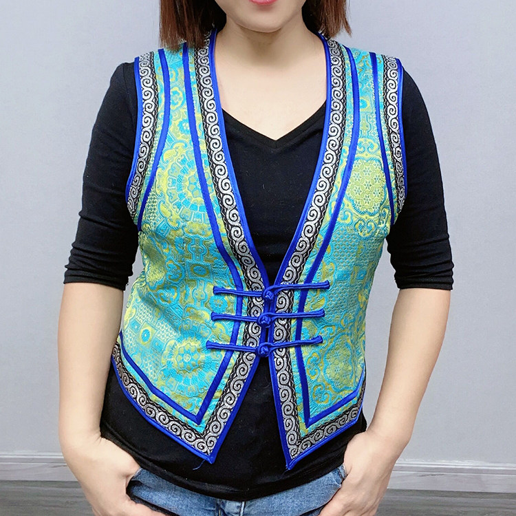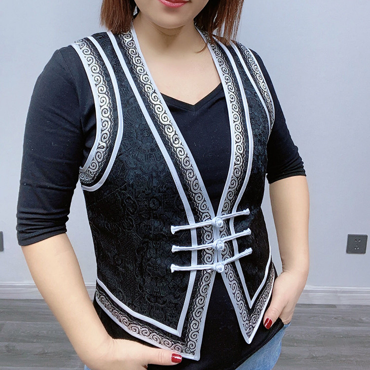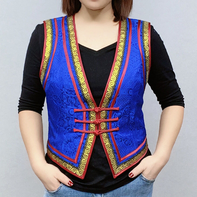 v领短款 修身 纯色 女款 民族风女士马甲蒙古族特色坎肩少数民族服装