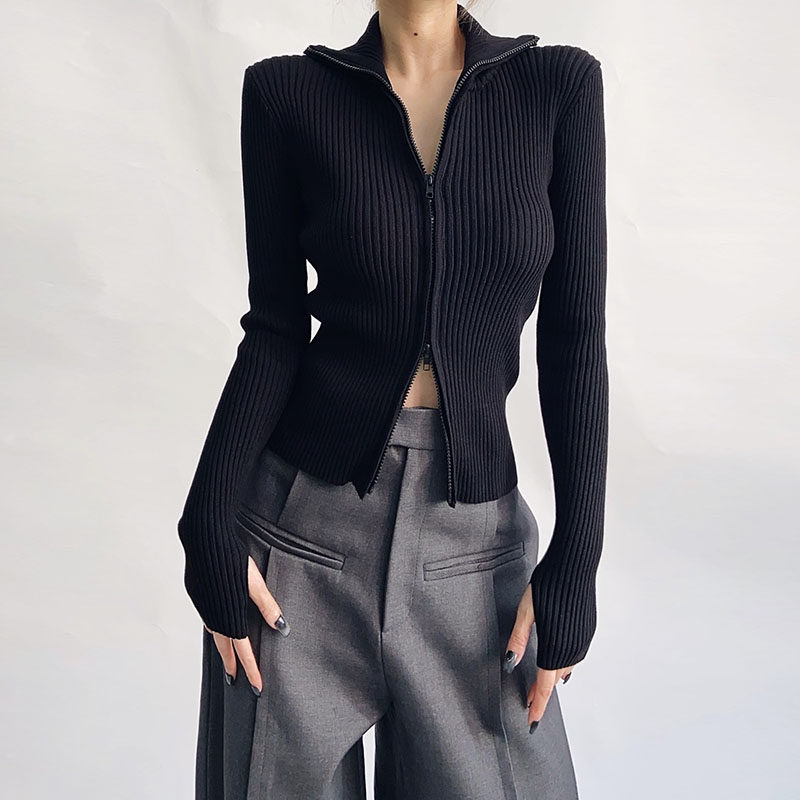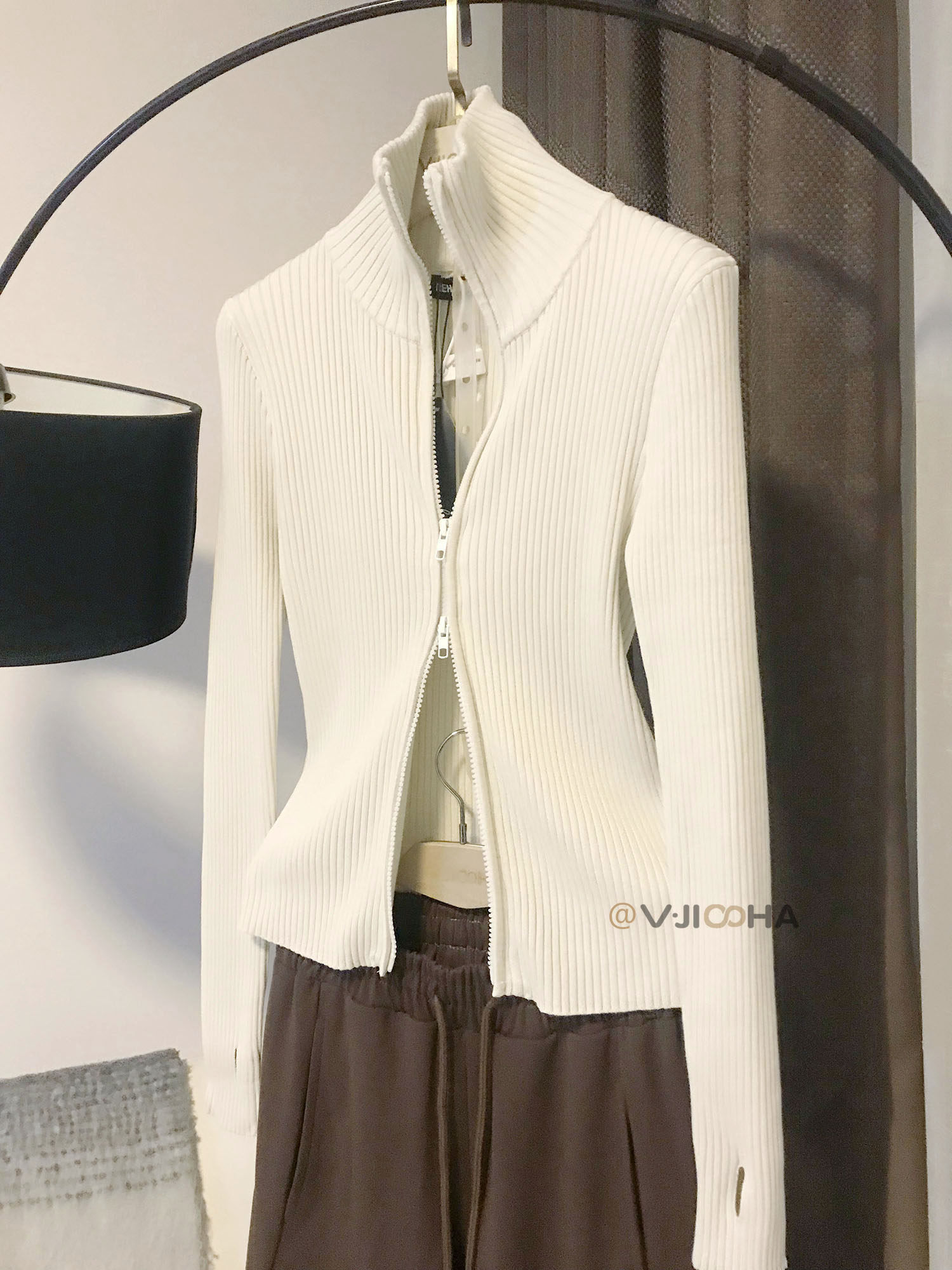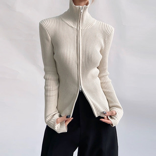 螺纹棉高弹修身 新款 套指长袖 2023春季 毛衫 外贸精品百搭高领针织衫