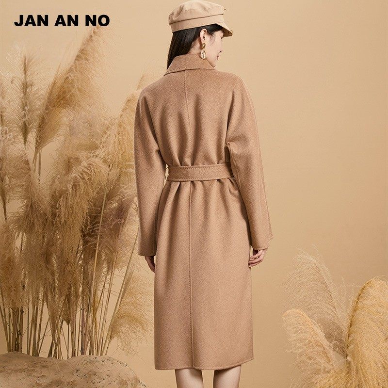 新款 2025冬季 秋水伊人红色翻领毛呢外套 通勤大衣 100%绵羊毛