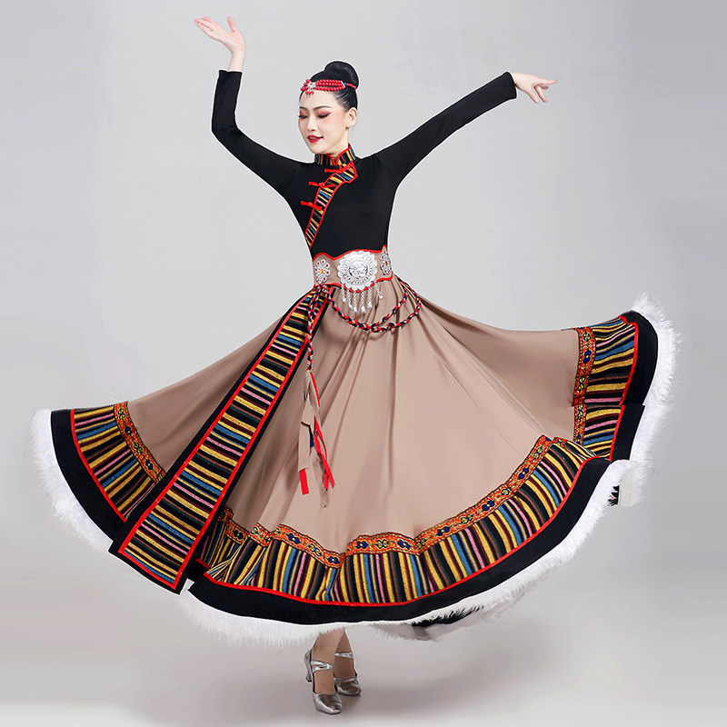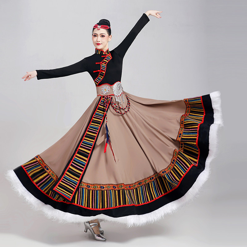 蒙古服装 女艺考少数民族演出服藏族成人舞蹈服练习半身大摆裙套装