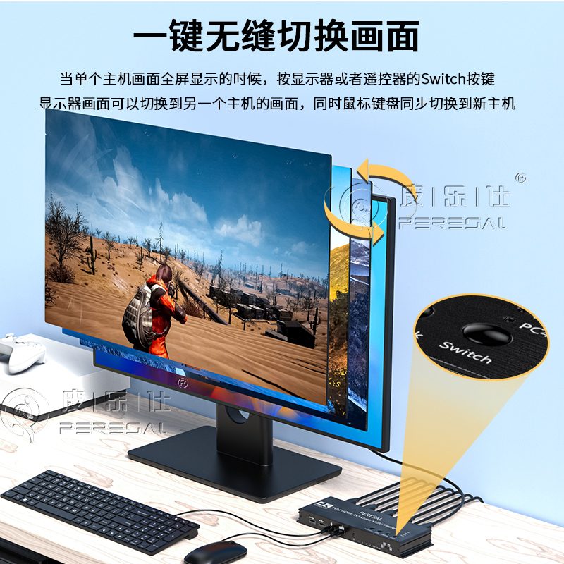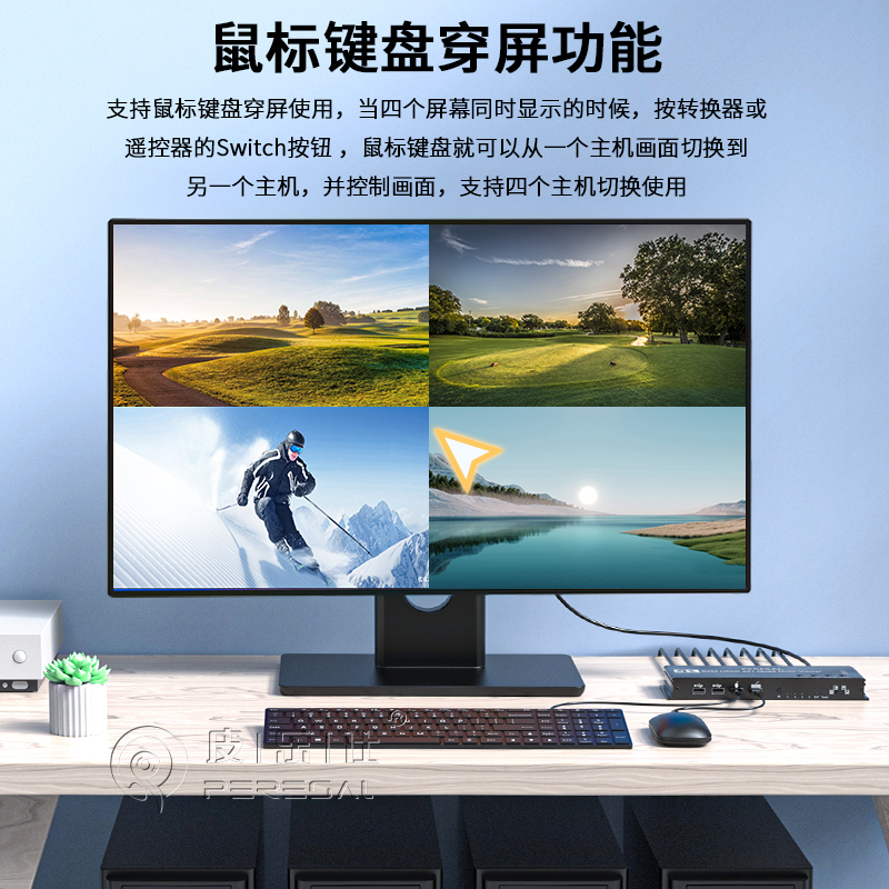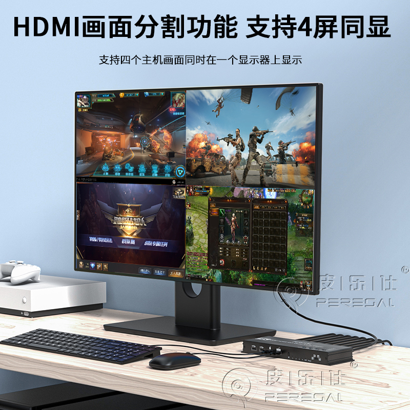 皮乐仕KVM切换器电脑HDMI四进一出同时显示画面分割器4K无缝切换不黑屏HDMI4进1出分屏支持热键usb鼠键共享器