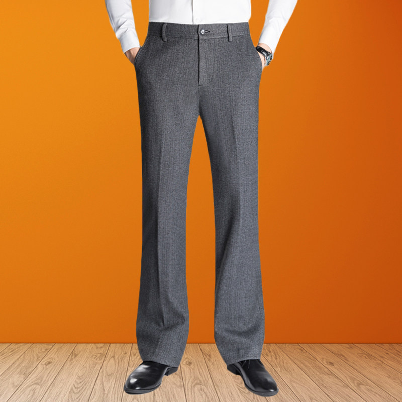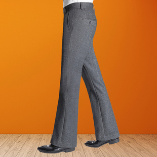 毛呢喇叭裤 西裤 男式 垂感弹力微喇男装 人字条纹休闲阔脚长裤 秋冬季