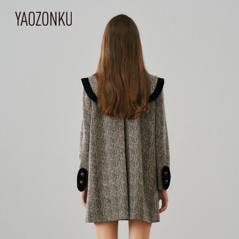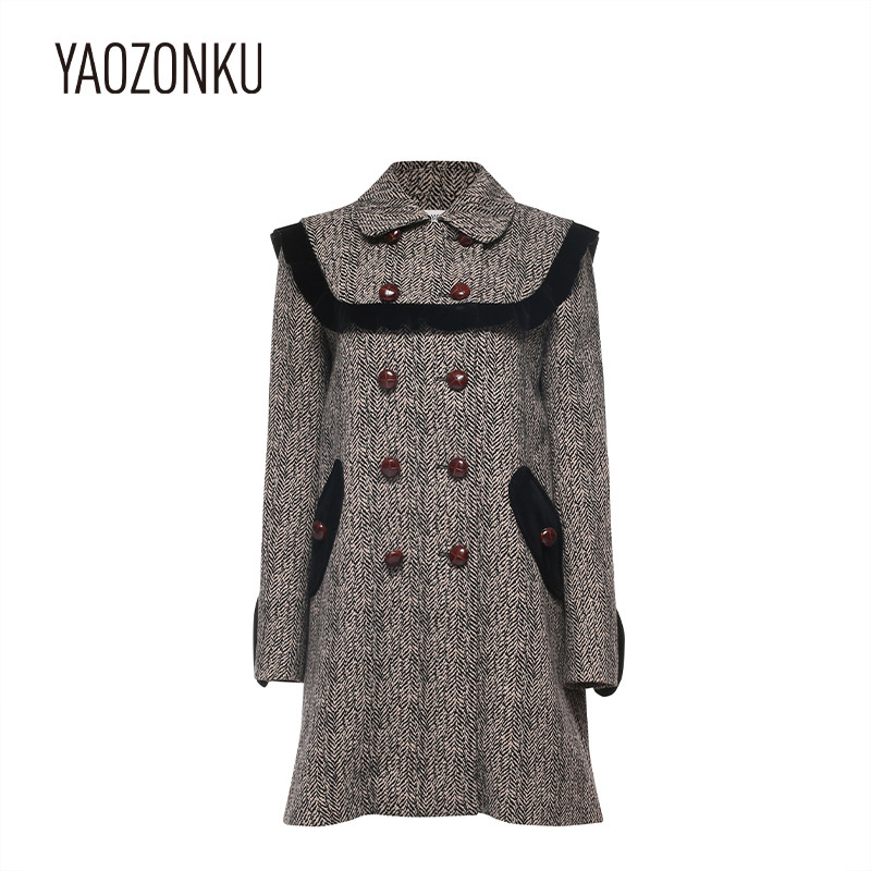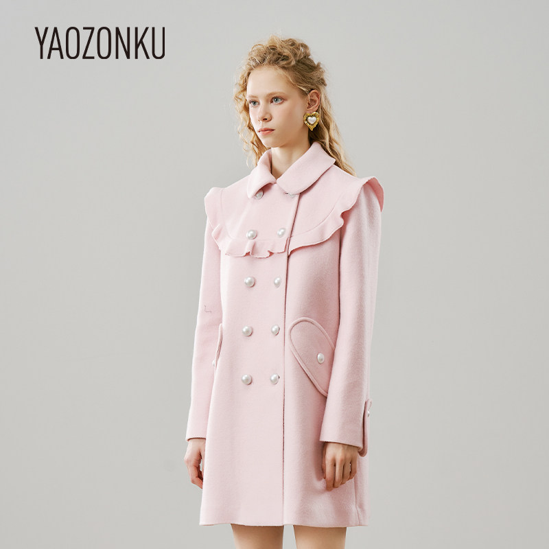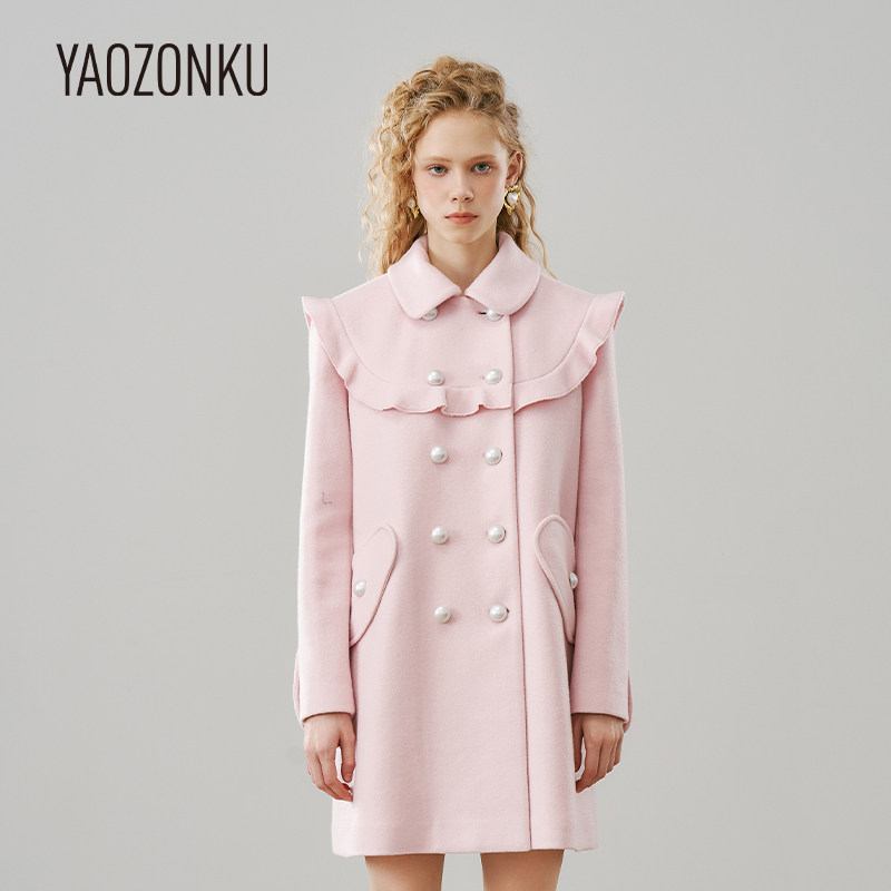 YAOZONKU姚宗谷复古双排扣大衣娃娃领女设计感气质冬季 毛呢外套