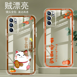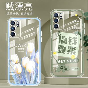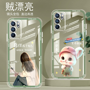 高级感 卡通创意新品 直边晶透OPPORENO6手机壳reno6pro新款 全包边镜头全包防摔新年保护套女硅胶软壳可爱个性