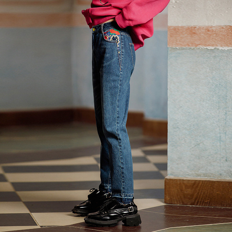 Veryrareme 低腰晴空蓝直筒牛仔裤
