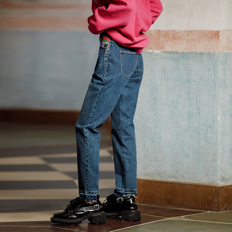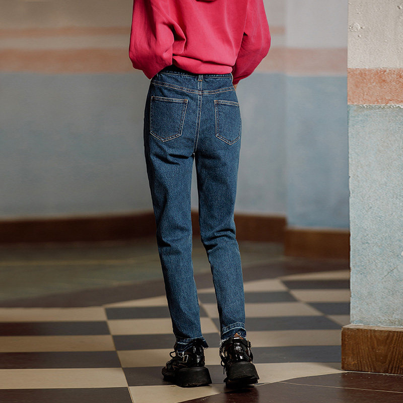 子高腰窄版 女秋冬裤 烟管裤 冬季 显瘦神裤 靴裤 加厚加绒直筒牛仔裤
