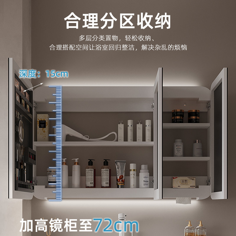 浴室镜柜简约挂墙式 镜箱收纳分层架洗手间梳妆防水镜子卫生间