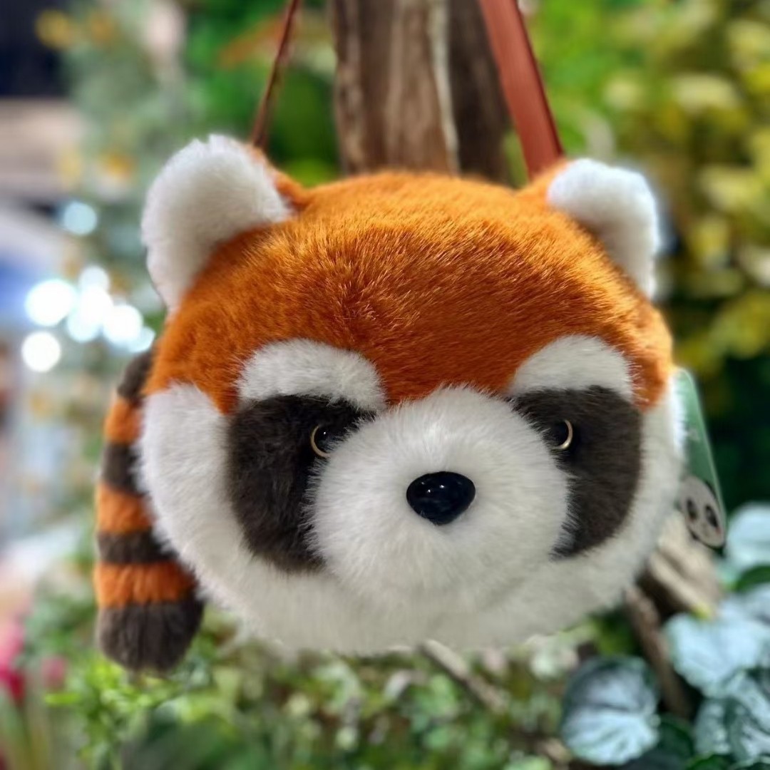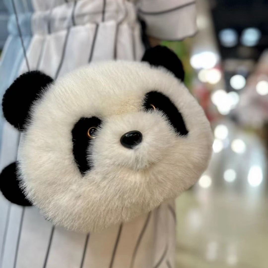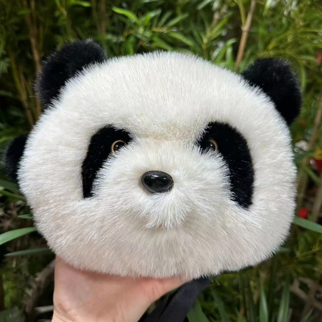 成都熊猫基地纪念花花长毛仿真熊猫大头斜挎包儿童玩偶布艺 包邮