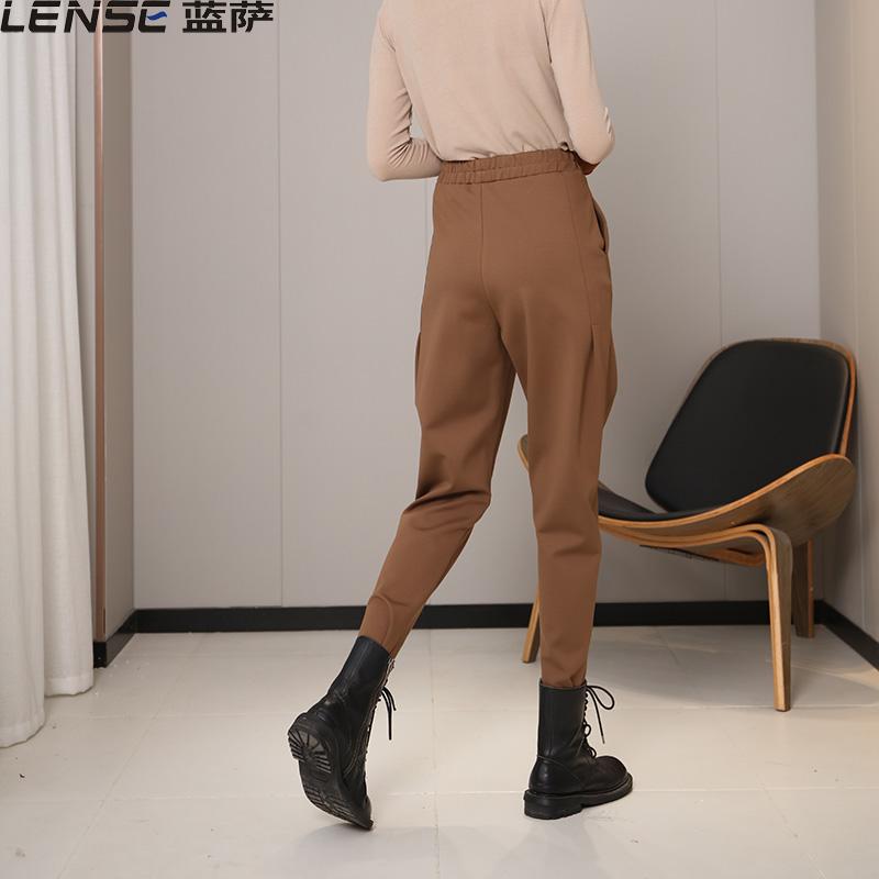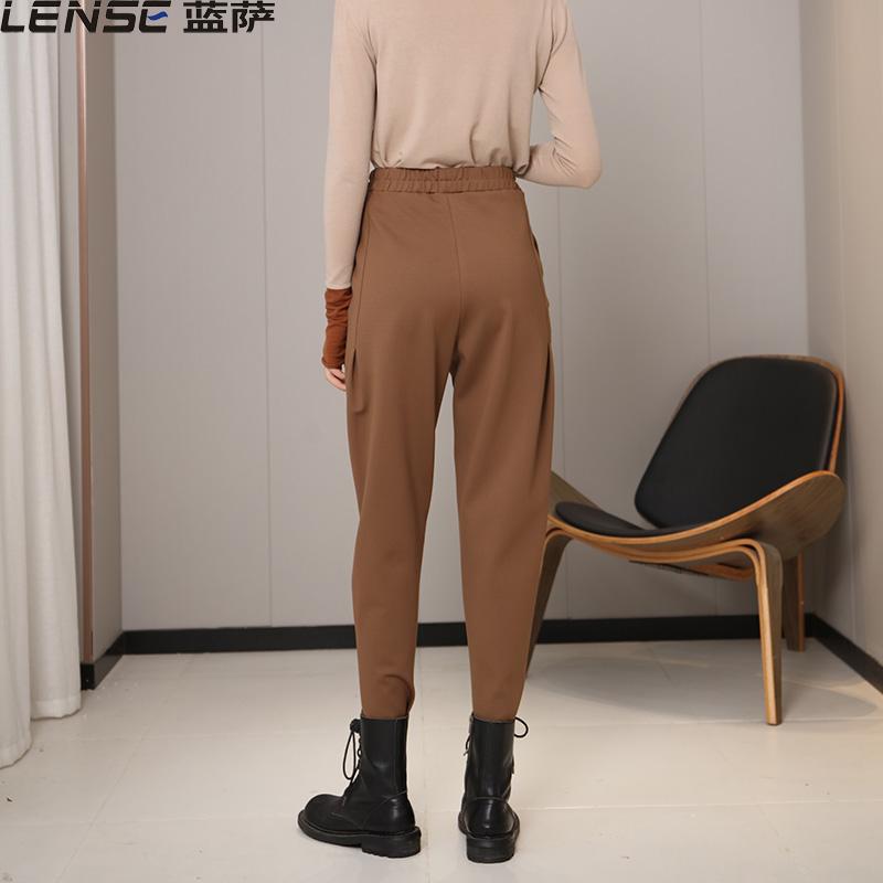 咖色休闲靴裤 子女锥形哈伦小脚大码 加绒棕色裤 蓝萨2024秋冬新款