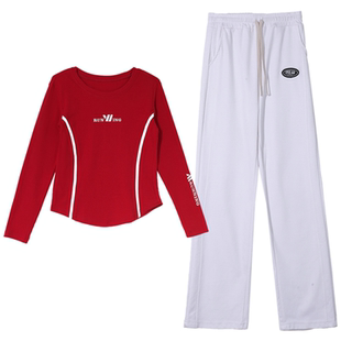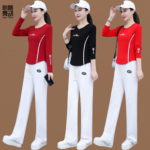 女 健身操鬼步舞杨丽萍运动跳操服套装 广场舞服装 春秋T恤运动长裤