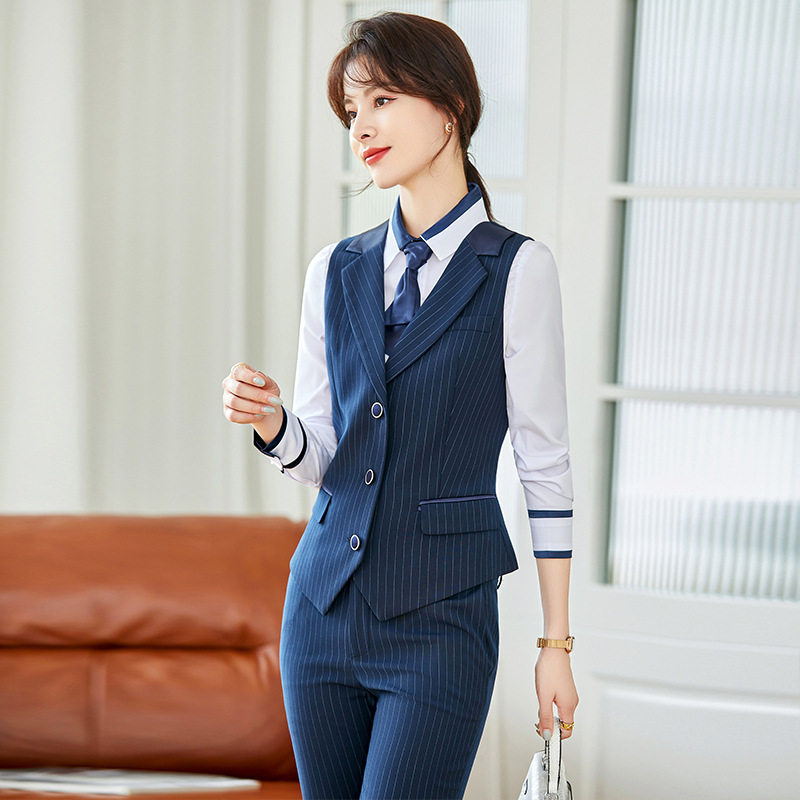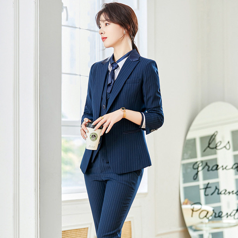 气质小西服正装 时尚 商务工作服套裙五件套 女新款 高端条纹职业套装