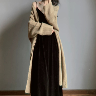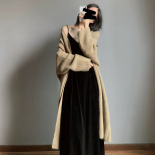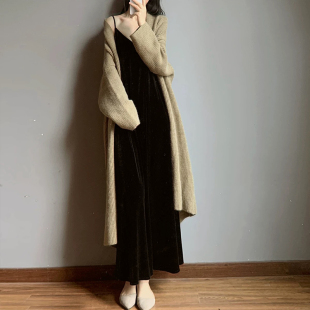 丝绒吊带连衣裙长款 胖MM遮肉裙子气质宽松黑打底背心长裙 秋冬大码