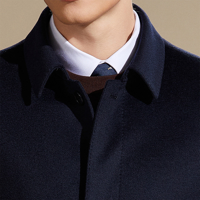 西装 过膝双面羊绒外套 领毛呢子风衣 中长款 纯羊毛双面呢大衣男士