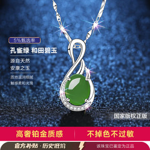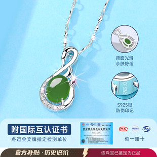 天然和田玉银项链女纯银玉石玉吊坠女士女款 生日圣诞节礼物送妈妈