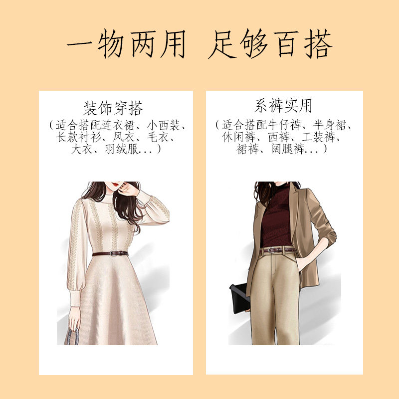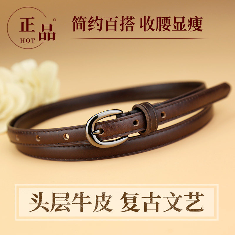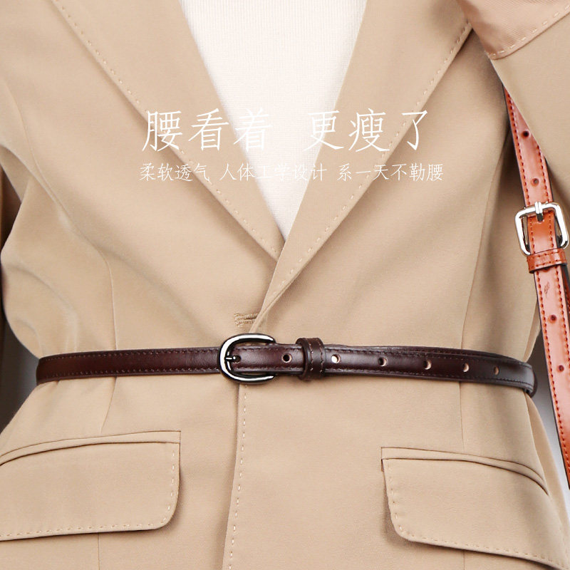 腰带女细真皮头层牛皮百搭装 收腰ins风潮皮带 饰棕色复古配裙西装