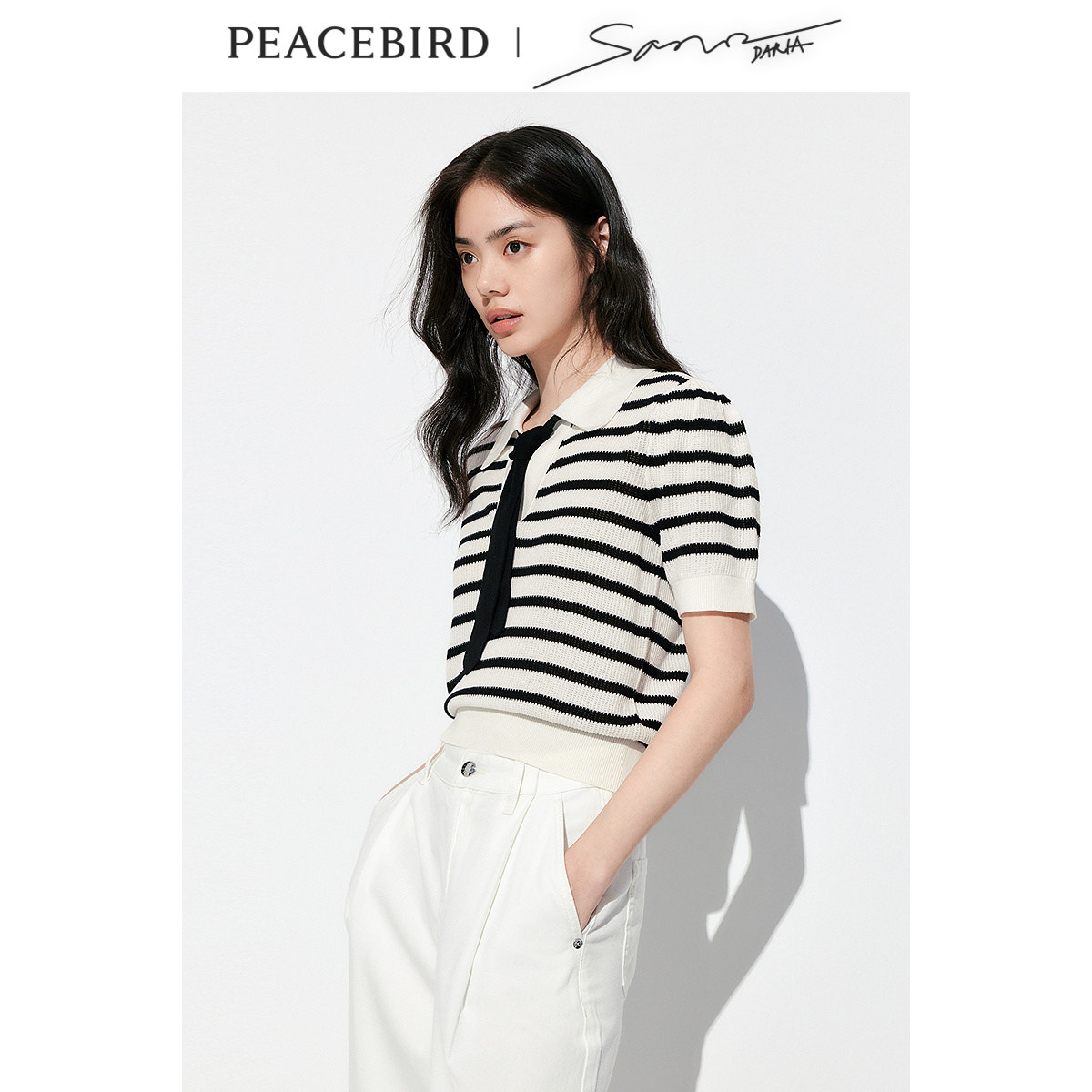 A1EED2C71 气质简约学院风配领带条纹线套衫 太平鸟女装 夏季