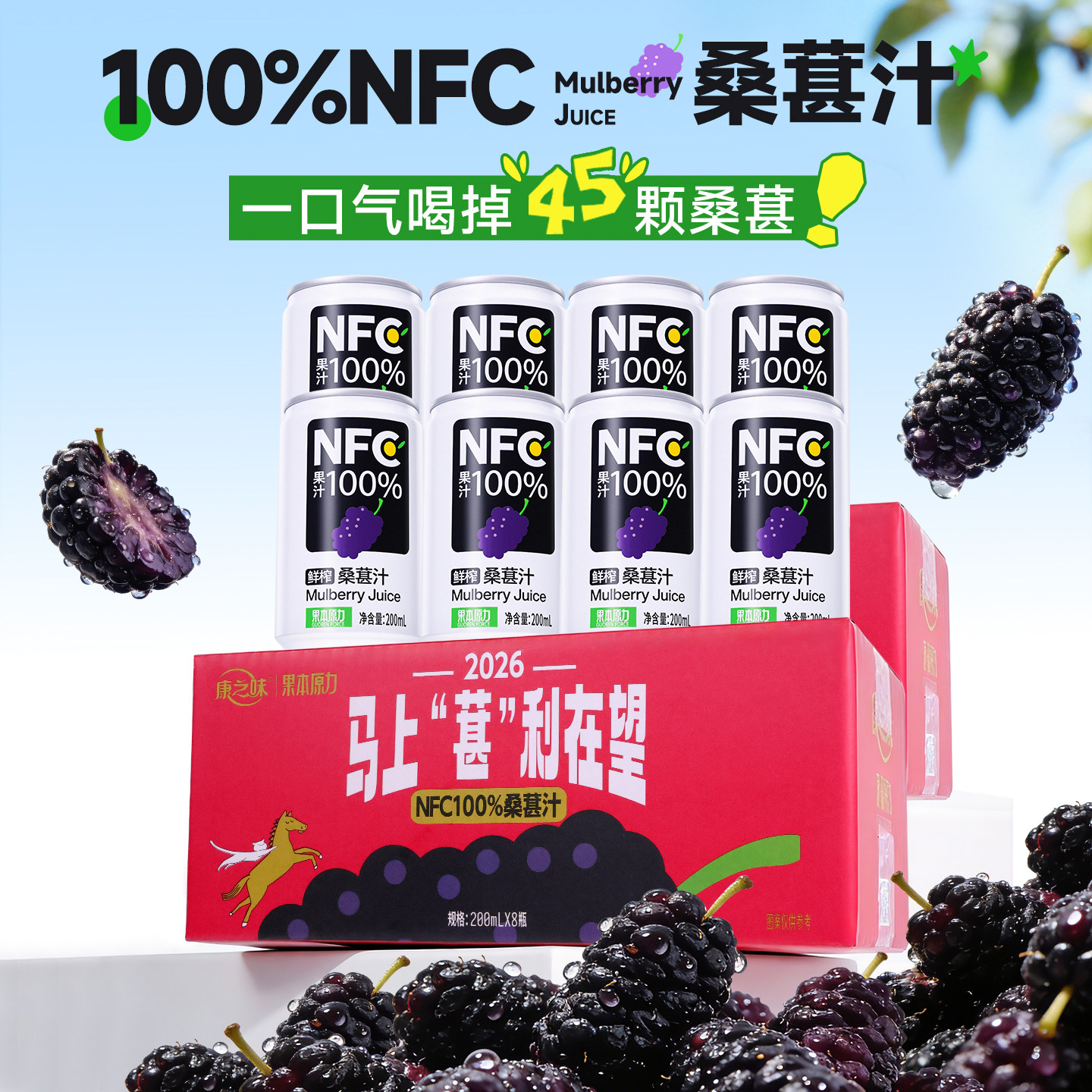 康之味桑葚汁200ml 3听鲜果原榨NFC无添加纯果汁桑椹原浆饮品整箱