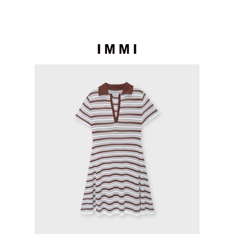 连衣裙银泰百货300124 女士不规则条纹POLO领短袖 设计师品牌 IMMI