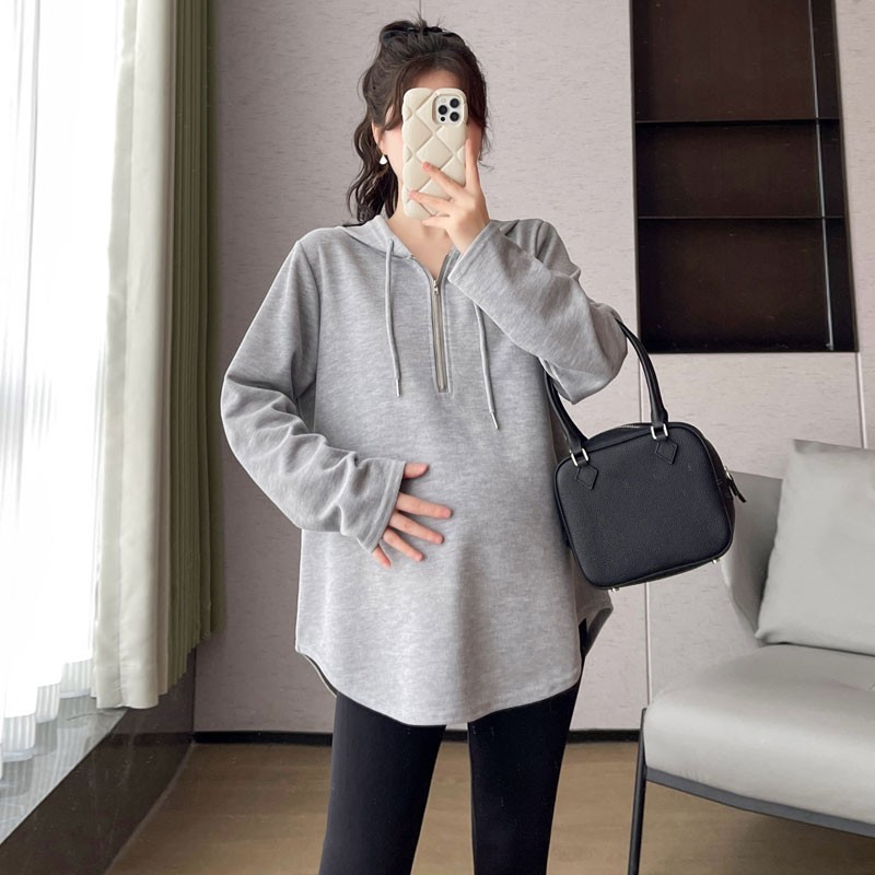 韩版 2025春秋季 时尚 新款 休闲甜美宽松连帽T恤潮妈减龄上衣 孕妇装
