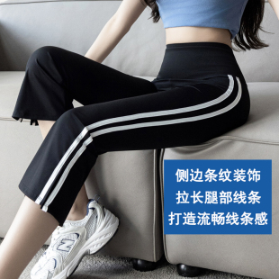 子 女春夏外穿收腹显瘦运动瑜伽小个微喇裤 大码 高腰七分鲨鱼喇叭裤