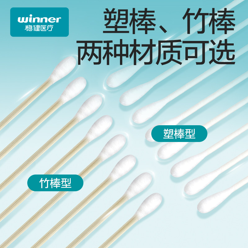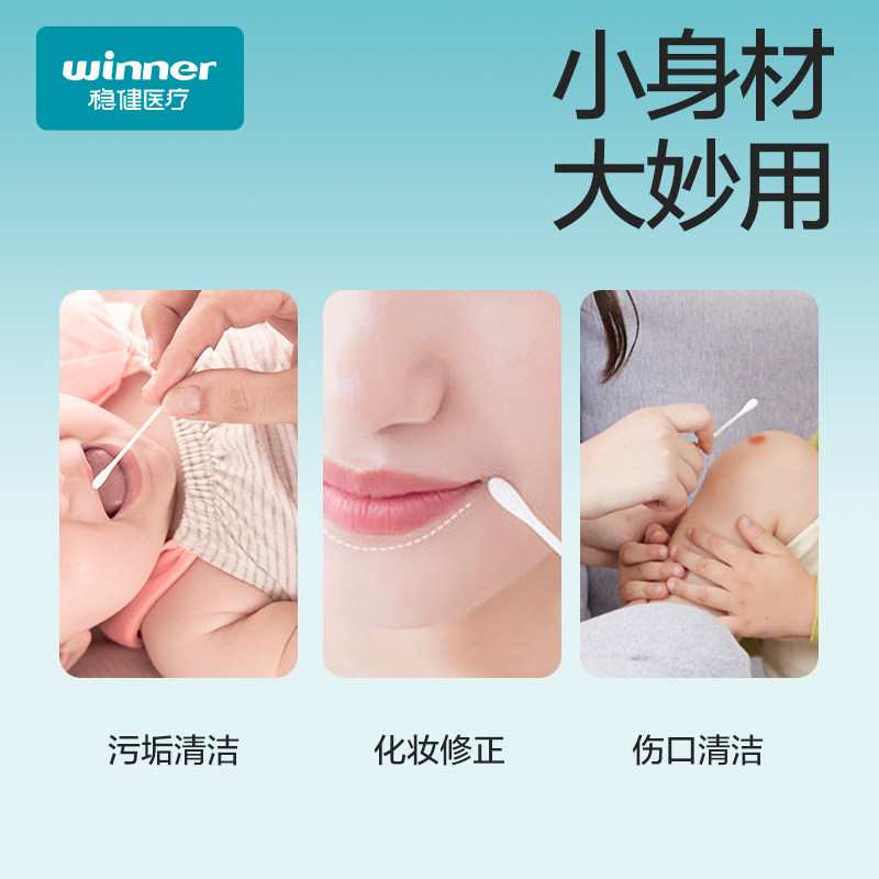 稳健医用棉签双头消毒清洁圆头化妆用卸妆一次性家用非无菌棉花棒