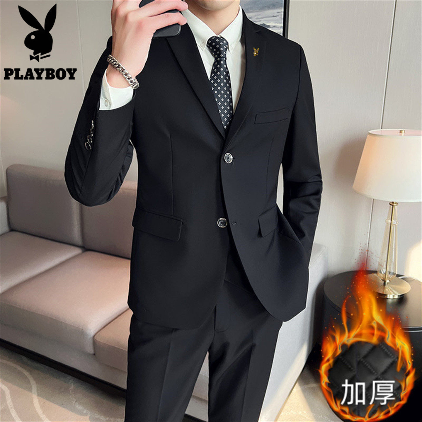 西装 花纹修身 外套男 海澜之家绒感弹力休闲西服男25秋冬新时尚 HLA