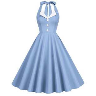 美式 复古女神港风气质年代感波点表演派对显瘦挂脖度假大摆连衣裙