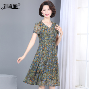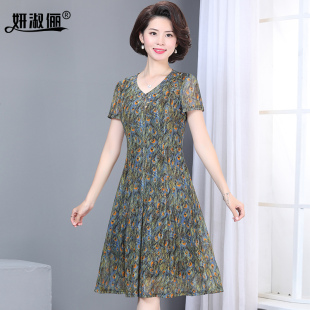 台湾纱品牌时尚 中老年人女装 绿裙子 连衣裙高贵洋气质新款 妈妈夏装
