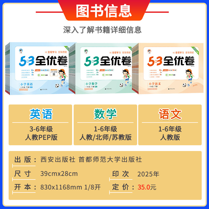 期末复习冲刺100分 北师大苏教五三5.3小学生全套同步测试卷单元 2026春秋版 53全优卷一二三四五六年级上下册语文数学英语人教版