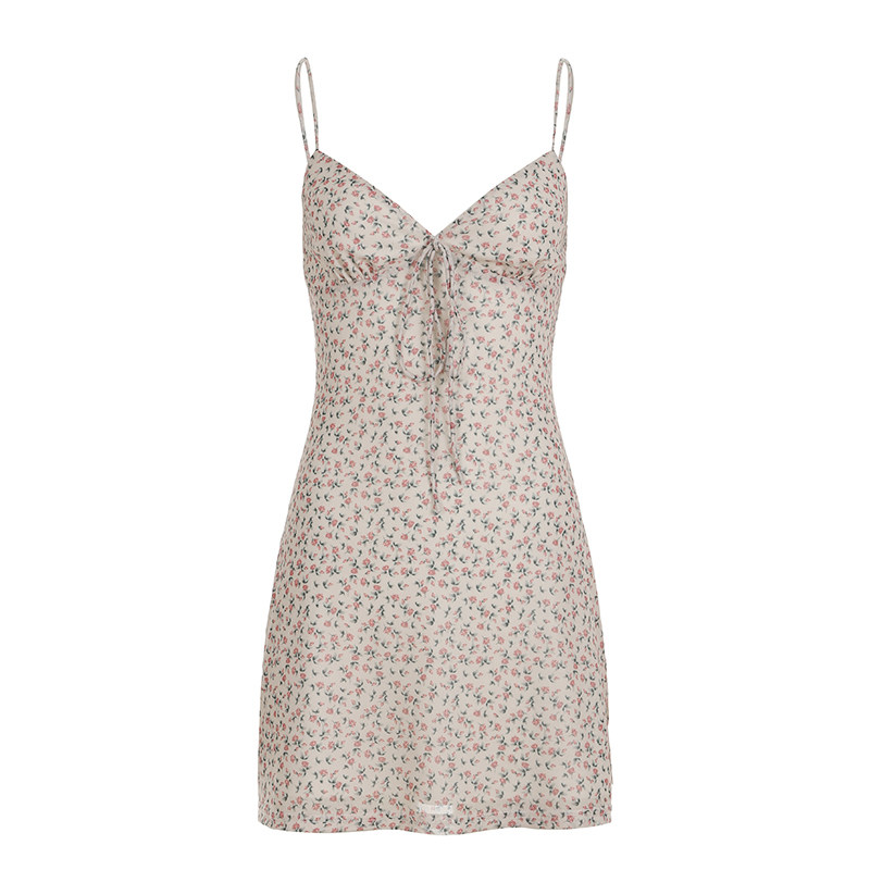 FUNOFF 简约白色绑带分割束腰吊带背心性感低胸分割收腰显瘦上衣