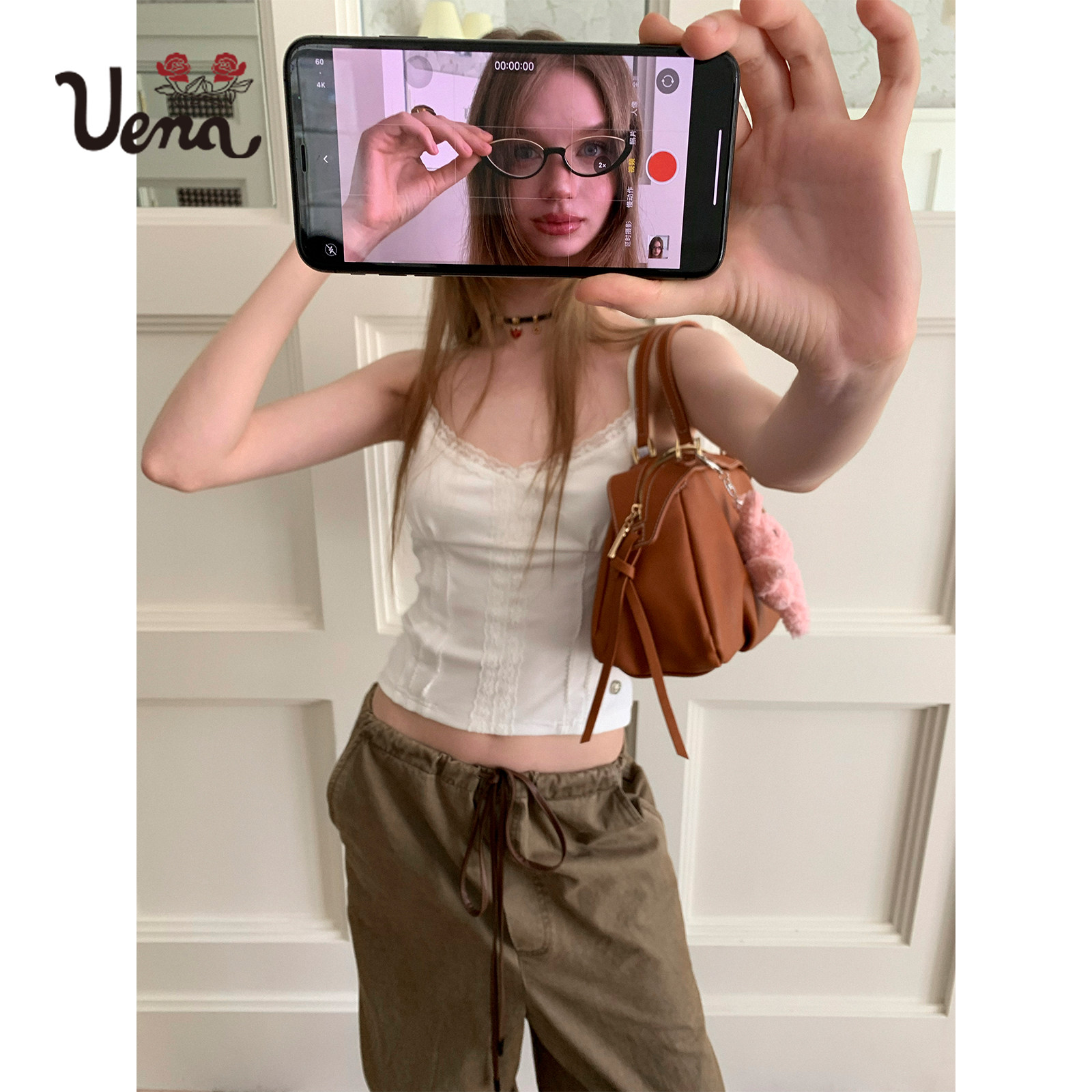 白色蕾丝花边收腰修身 Uena安宥真同款 可调节吊带背心 信纸吻痕