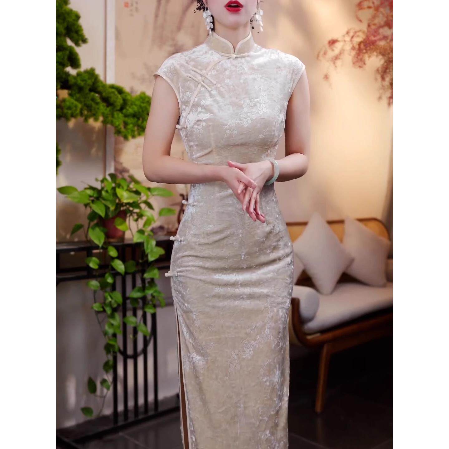 高端时尚 复古中国风改良旗袍过膝长裙女气质收腰显瘦阔太太连衣裙