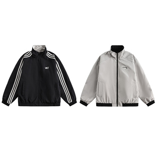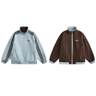 DUSK三条杠双面穿夹克女春秋宽松bf美式 复古运动棒球服学院风外套