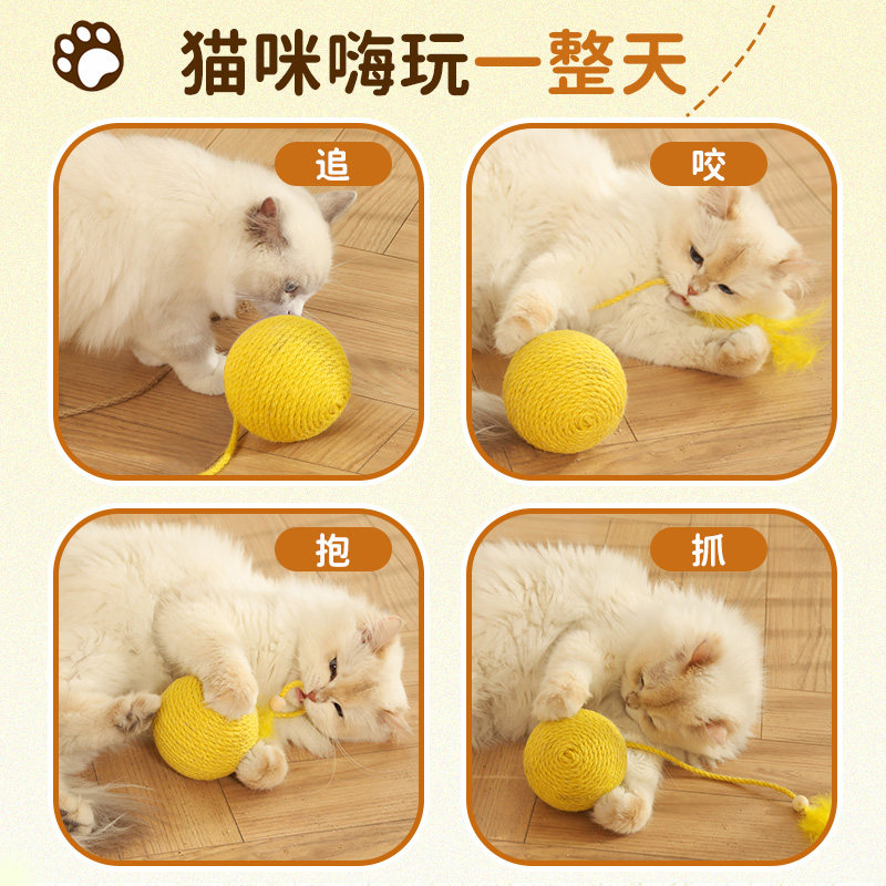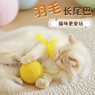 猫玩具弹力球自嗨解闷神器逗猫棒新款 运动球带羽毛猫消耗体力用品
