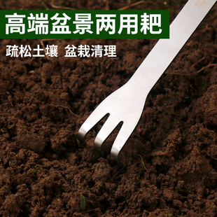 新款 两用耙松土工具 盆景耙子双头不锈钢压土刀摘芽手工盆景制作