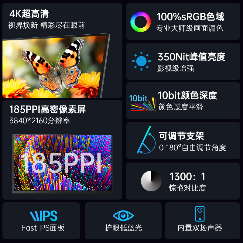 爱国者23.8寸大屏便携屏显示器4K电脑笔记本扩展屏180HZ移动屏