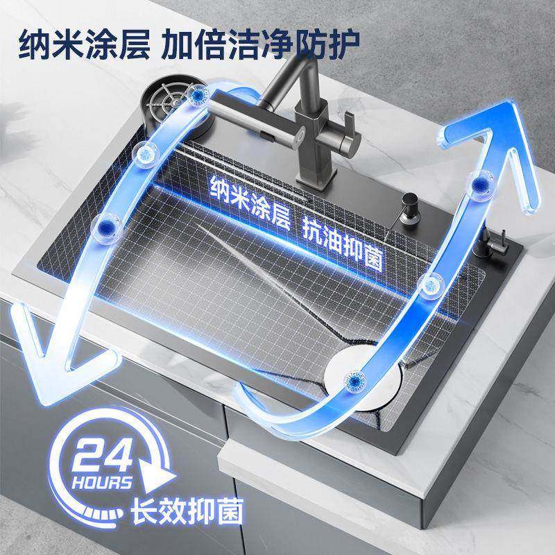 博BPO致BOO厨房水一体340多功能加厚纳米Z纹瀑布大单槽手工洗槽碗
