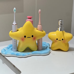 星星牙刷架卫生间家用牙具收纳筒手电动牙刷底座支架陶瓷置物架盘