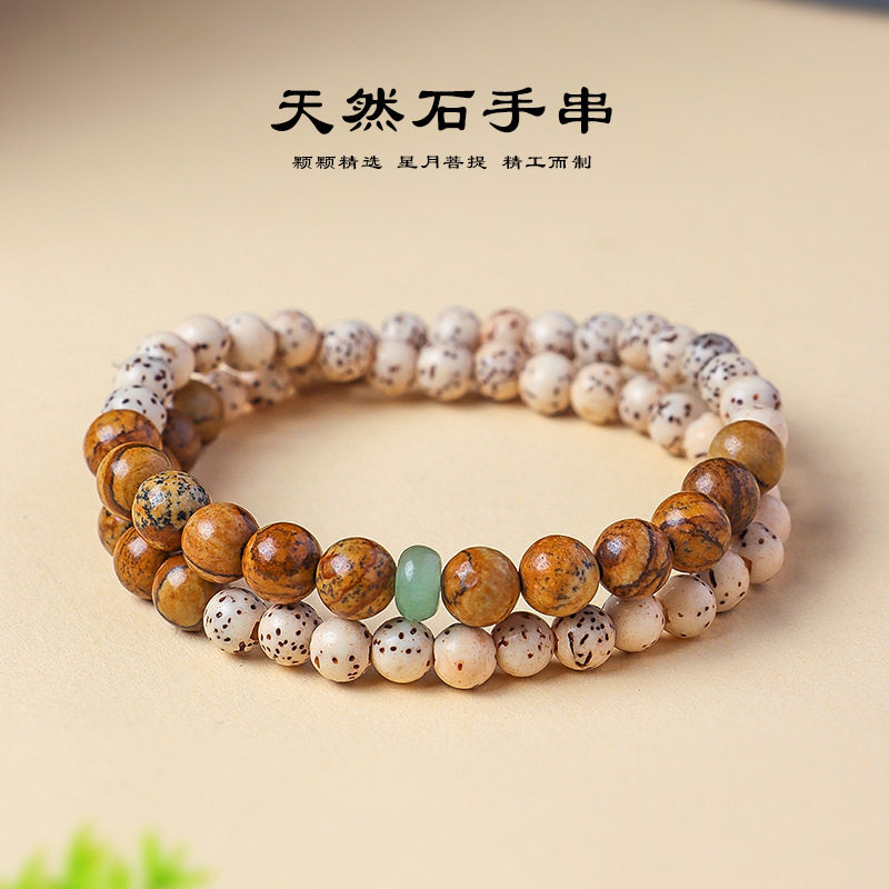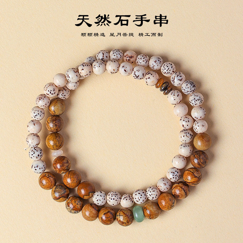 星月菩提双圈串珠天然石手链男女中国风文艺复古东陵玉文玩手串