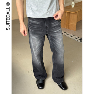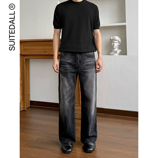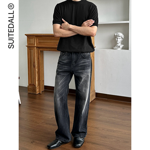 直筒微喇叭磨破洞百搭长裤 闪电裂纹水洗黑牛仔裤 2021M SUITEDALL