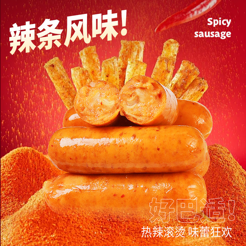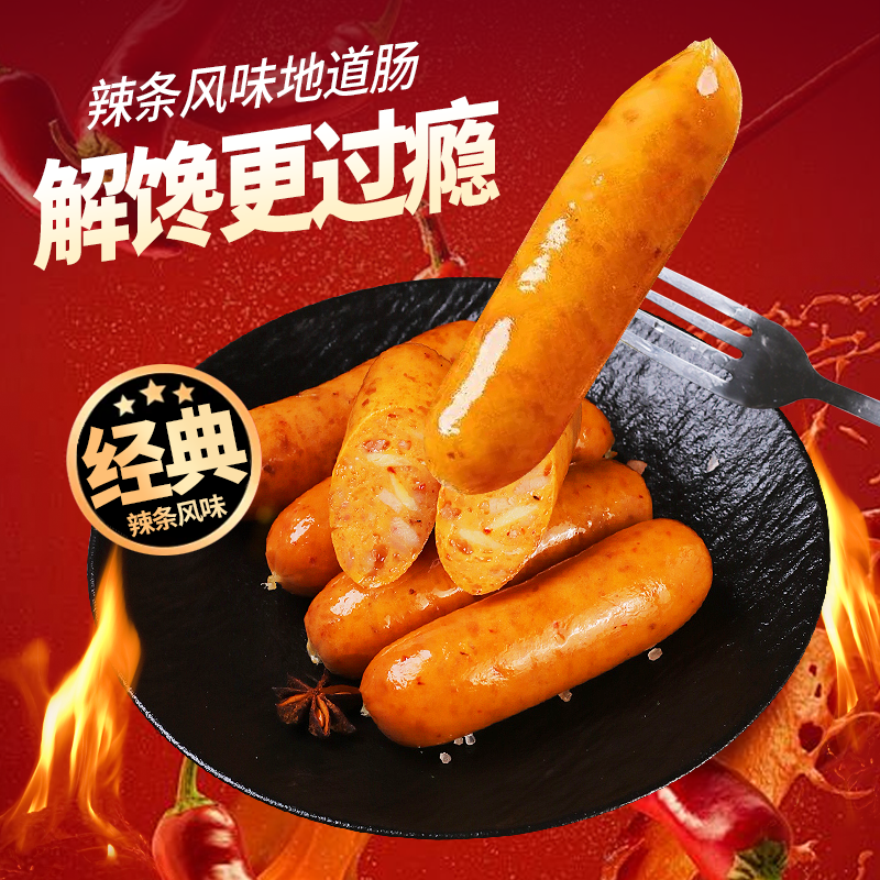 珍享辣条风味地道肠台湾火山石烤肠地道烤肉肠台式 热狗脆皮烤香肠