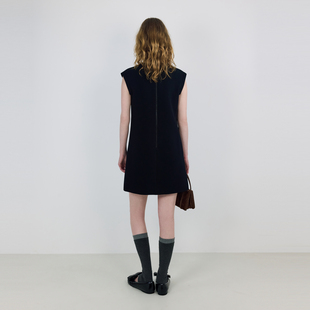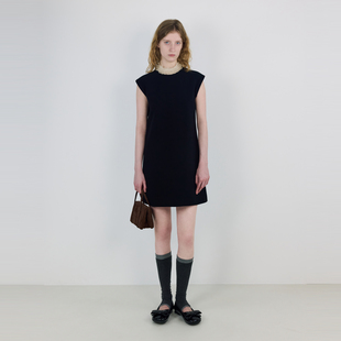 IIIVIVINIKO2025秋新款 连衣裙女M530606128B 气质可拆卸蕾丝领无袖
