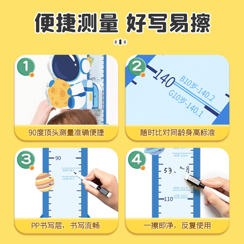 儿童磁力身高贴纸神器宝宝精准测量仪尺可移除量升高不伤墙纸墙贴