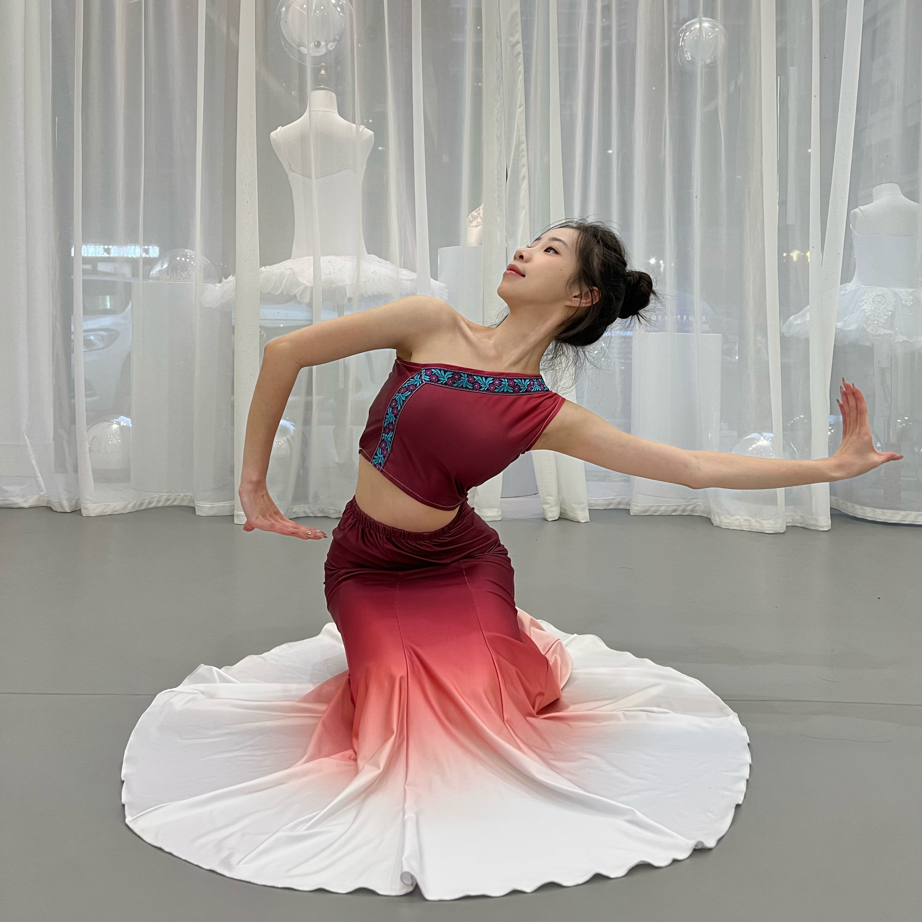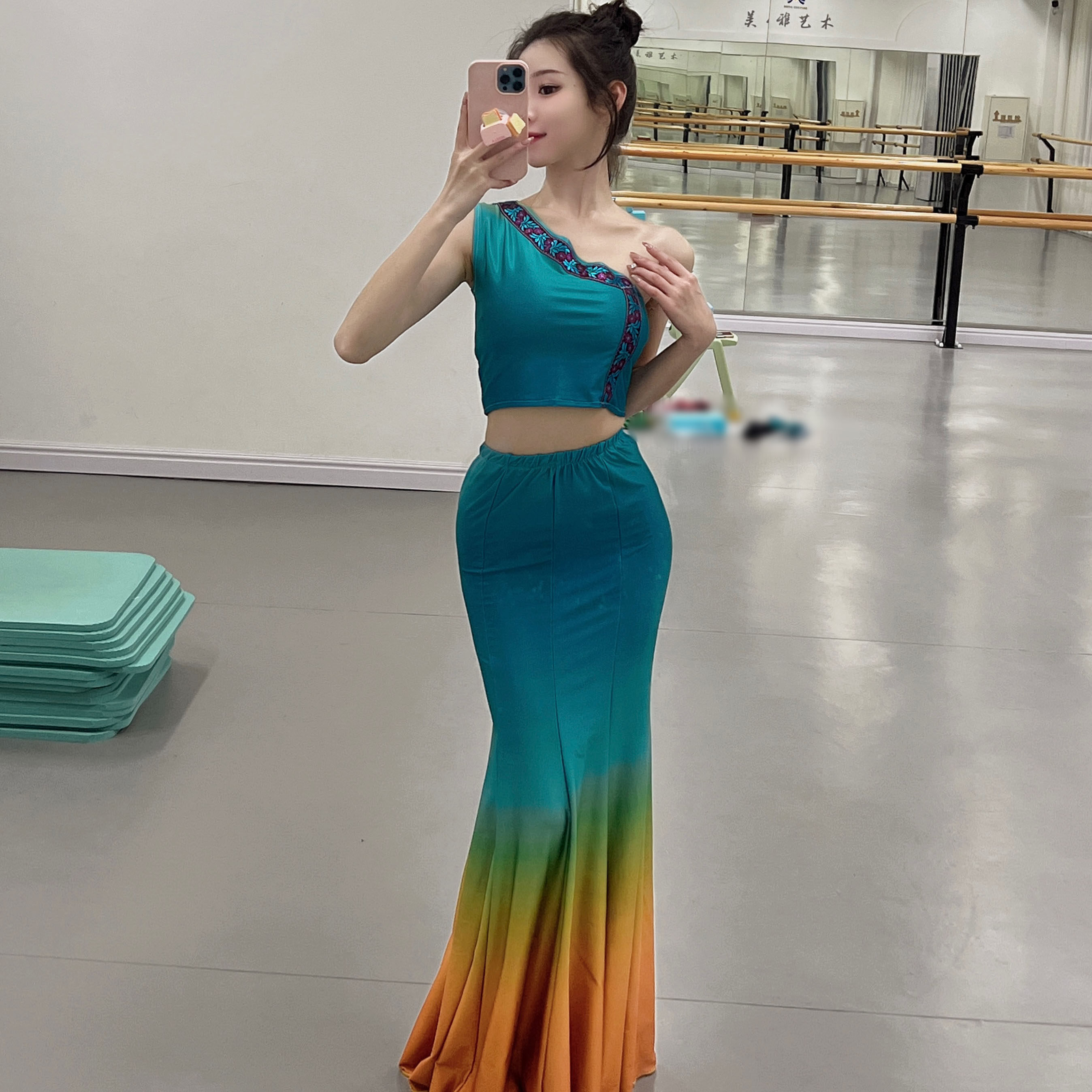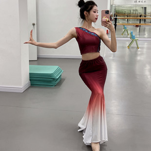 女舞裙练功裙表演服孔雀舞艺考服装 傣族舞蹈演出服装 傣族服装