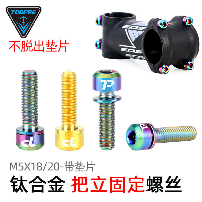 TOOPRE 20mm山地自行车TC4公路车钛合金把立螺丝带垫片减重 M5x18