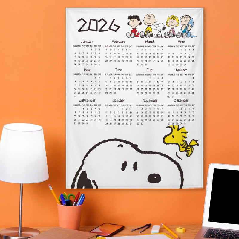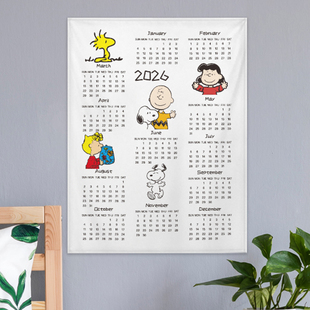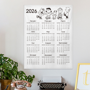ins风2026年史努比日历挂布卧室墙面装 饰宿舍房间布置背景布墙布