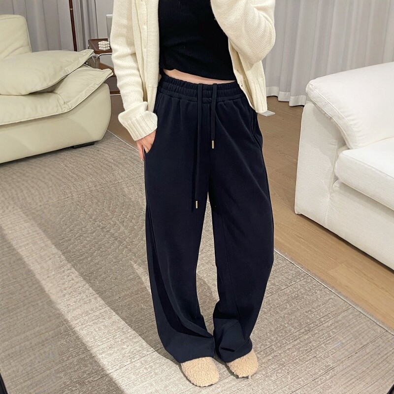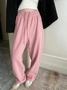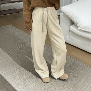 宽松休闲直筒束脚两穿运动裤 新款 女加绒加厚2025冬季 抽绳阔腿卫裤