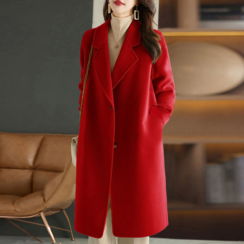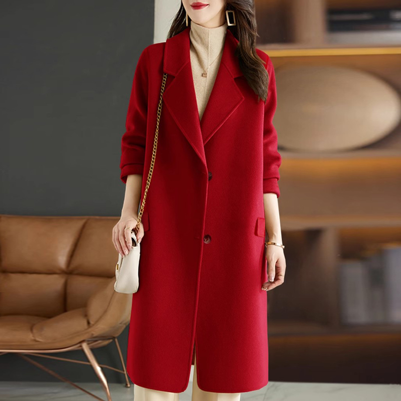 高端100%纯羊毛呢外套加厚 秋冬新款 双面羊绒大衣女中长款 宽松大码