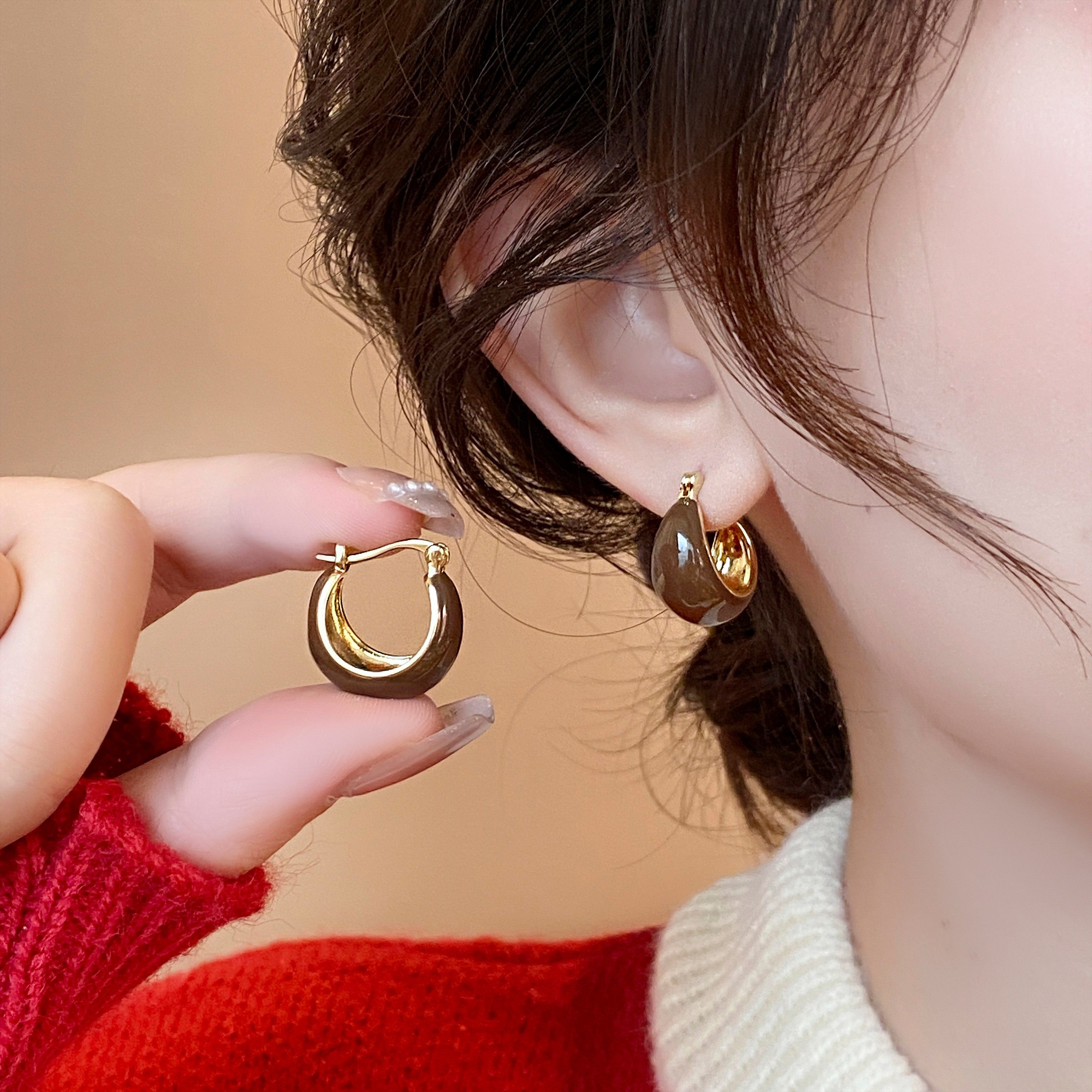 dodogogo玫瑰金耳扣女士耳圈素圈2025新款 耳环圈圈度假风耳饰 爆款